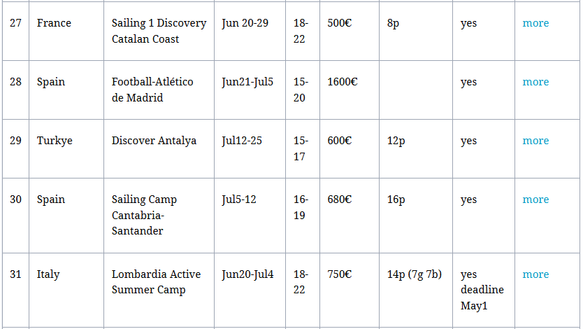 Leeftijd : van 16-17 jaar - max 2 per land