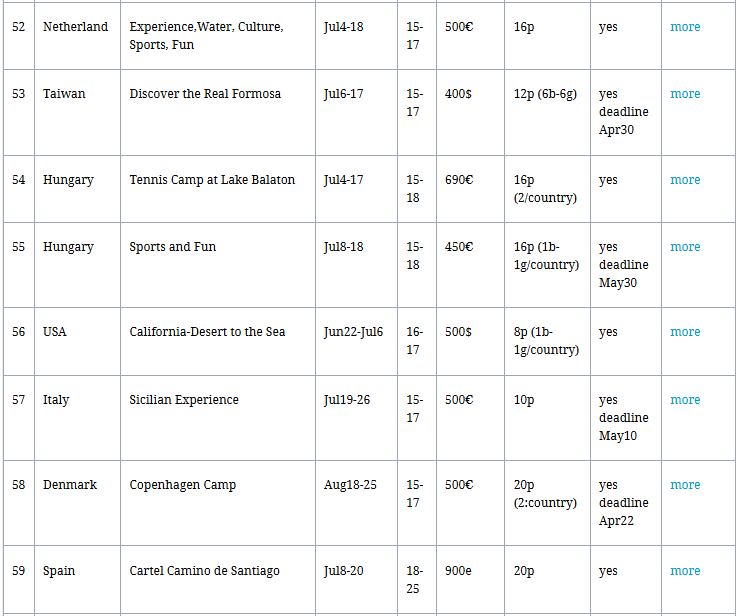 Leeftijd : van 18-25 jaar max 12 personen en 2/land